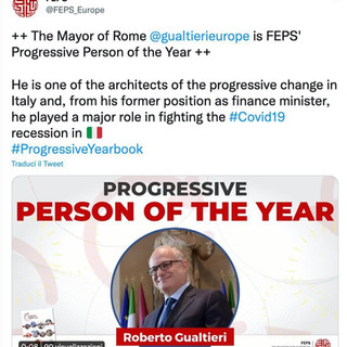 Complimenti a Roberto Gualtieri, indicato da FEPS “personalità progressista dell’anno”, nel giorno in cui Roma Capitale approva il bilancio. Avanti al suo fianco, per sconfiggere il virus e la crisi e continuare a costruire la rinascita della Capitale. Per Roma e tutti noi.
